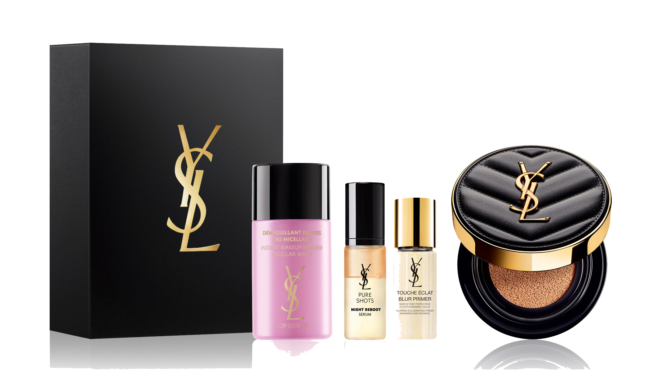 美肌フィルター級の美肌が叶うと話題の「アンクル ド ポー ルクッションN」、アワード多数受賞のYSL人気美容液とブラー下地に加え、クレンザーもセット。一度に話題のアイテムを試せる豪華限定スターターキット。