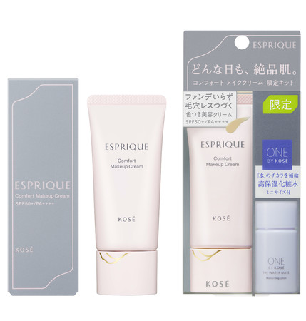 「エスプリーク コンフォート メイククリーム」に「ONE BY KOSÉ ザ ウォーター メイト」お試しミニサイズ(14mL)がついた限定品。35g+14mL/1色 ともに2021年8月21日発売