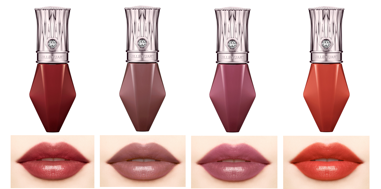 ジルスチュアート ルージュ クリスタル クリーミィホイップ ティント 左から、05 maple rhapsody、06 autumn berry、07 bite of grape、08 cinnamon milk 各3,080円(税込) 8月6日(金)発売