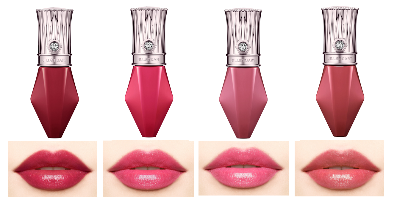 ジルスチュアート ルージュ クリスタル クリーミィホイップ ティント 左から、01 sign of blush、02 white oak、03 cranberry whip、04 mellow fig 各3,080円(税込) 8月6日(金)発売