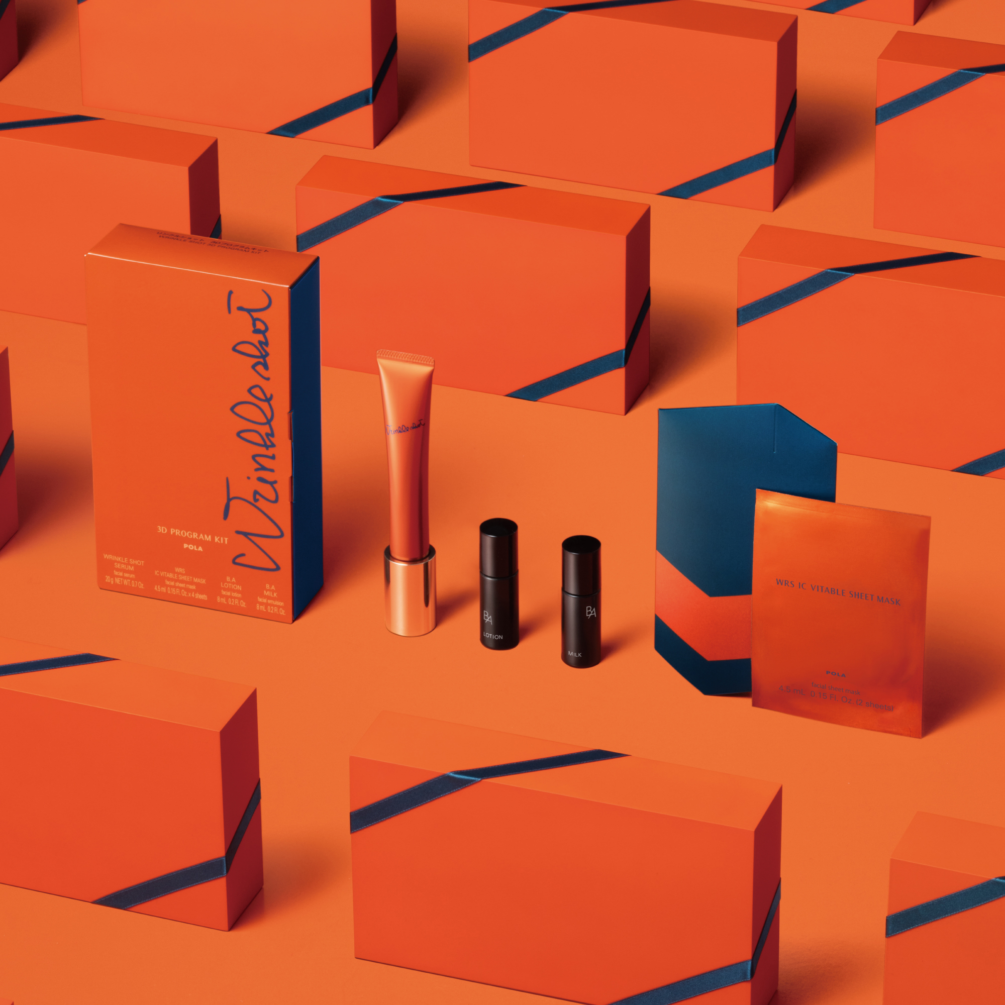 リンクルショット 3Dプログラムキット <セット内容>ポーラ リンクルショット メディカル セラム N 20g、WRS ICバイタブルシートマスク 2枚入り(4.5mL)×4包、B.A ローション 8mL、B.A ミルク 8mL 14,850円(税込) 10月18日数量限定発売