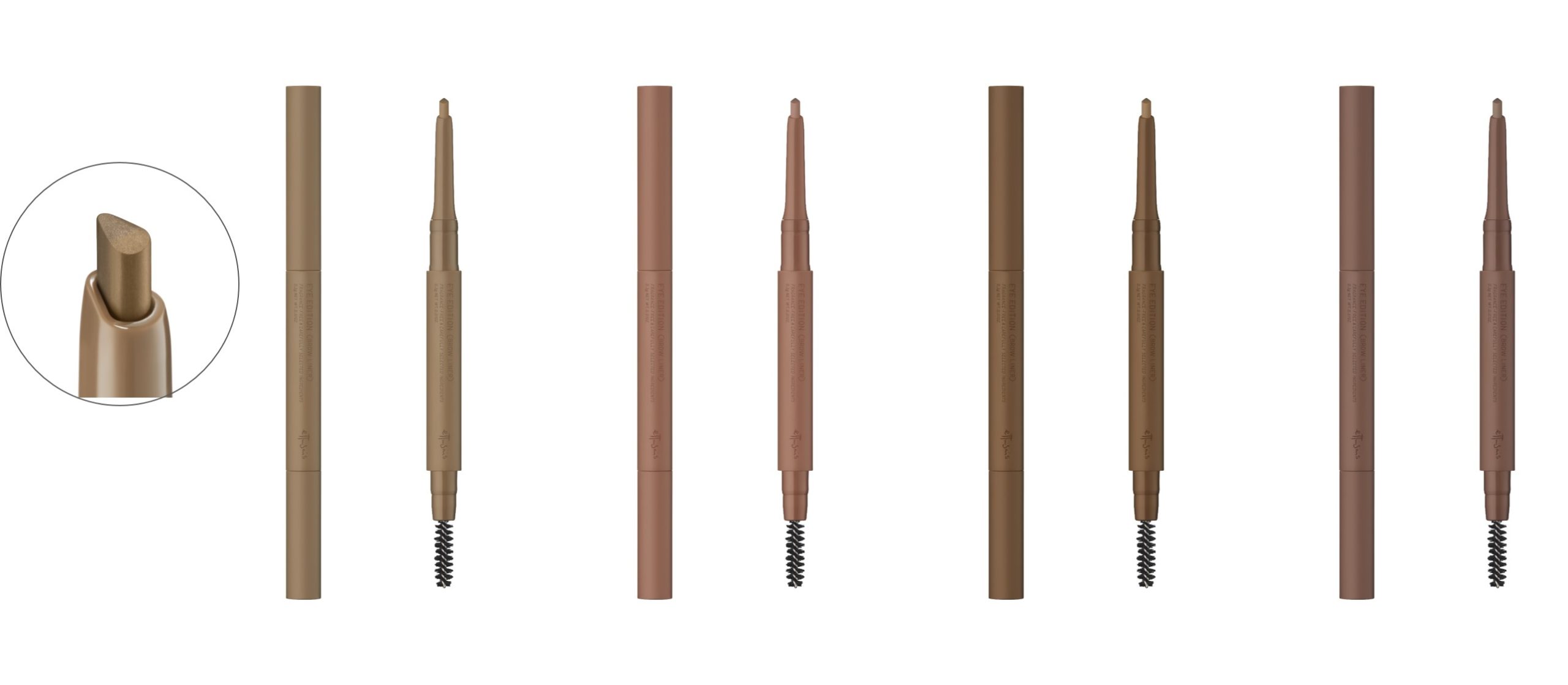 描き足しながらぼかせるペンシルとパウダーを一つの芯にまとめた 新発想の2層芯アイブロウ。しずく型2層芯で、自眉となじむ自然な仕上がり。毛流れを整え、自然になじませるスクリューブラシつき。WP、スクワラン配合。