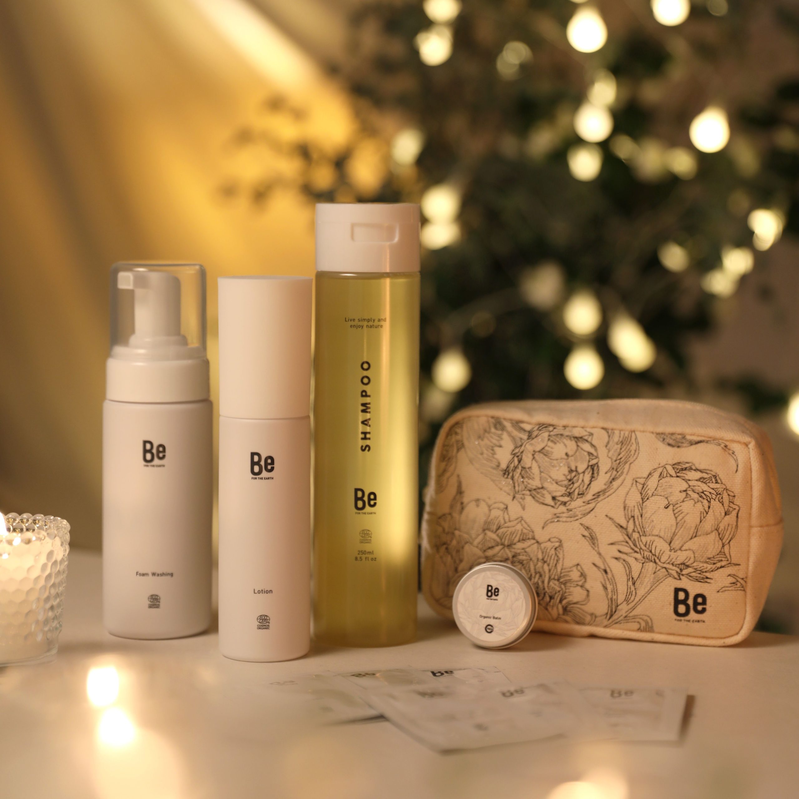 日本オーガニックコスメ協会が定めるJOCA認証とフランスエコサートが定めるエコサートコスモス認証を取得。天然成分100%で肌にも地球にもやさしい限定パッケージミニバーム、エコサート認証を取得したスキンケア・ヘアケアアイテムと、限定デザインのオリジナルポーチをセットにしたクリスマス限定のセット。