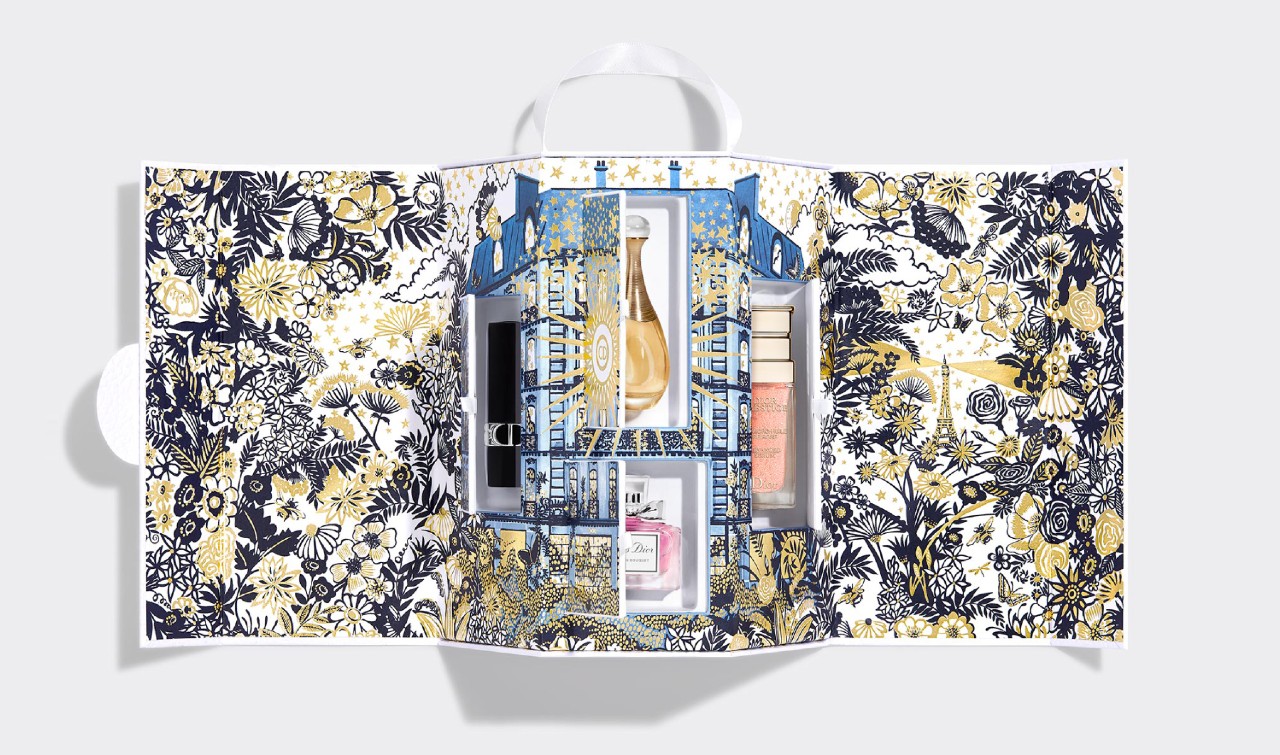 ディオール2021年のホリデー コレクションは、煌めくゴールドの花々があしらわれたミッドナイトブルーの世界観。