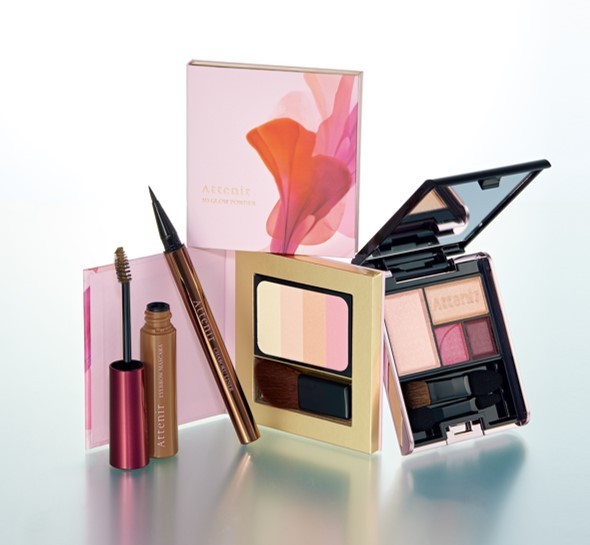 今年の冬メイクは、目もと&肌に、ほんのり赤みと艶を潜ませる「幸せ顔」メイク。シーズンごとに展開するアテニアのカラーメイクは、楽しみにしているファンが多い分野。すべて限定品。