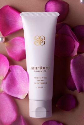アムリターラから初のハンドクリーム。醤油粕から抽出した天然ヒト型セラミド、エルカ酸を含むブロッコリー種子油を主軸に、保湿やUVケア成分として、ザクロ花エキスやエゴマ葉エキス、スーパーフルーツであるカカドゥプラムのエキス、スピルリナエキスを配合。発酵乳酸菌エキスで抗菌効果もプラス、真珠パウダーで塗り上げた肌の美しさもケアする。合成界面活性剤、合成防腐剤、合成香料、合成着色料、シリコーンオイル、鉱物油、石油由来成分は不使用。