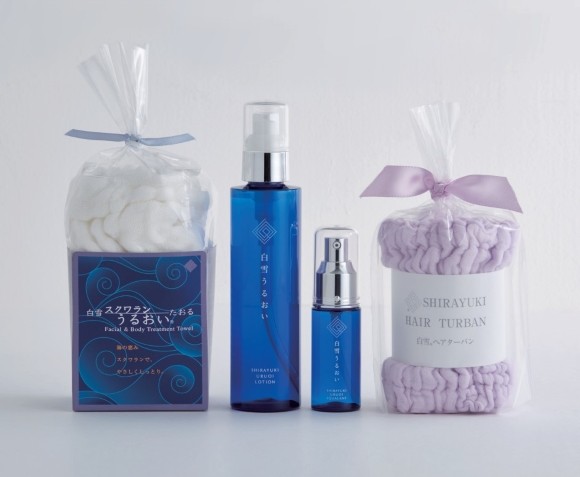 スクワランを練り込んだ新感覚のスキンケアたおるを販売する株式会社白雪が、タオルのシリーズとして化粧品を開発。ローションは、スクワラン、セラミドEOP、セラミドAG、セラミドAP、セラミドNG、セラミドNP、ゴボウ根エキス、ヘチマエキス、乳酸桿菌/豆乳発酵液、アスペルギルス/コメ発酵エキス、水溶性プロテオグリカン、加水分解卵殻膜などが配合されている。パラベン、着色料、アルコール、鉱物油、シリコン、安息香酸などは不使用。タオルと同等に肌に優しい商品。