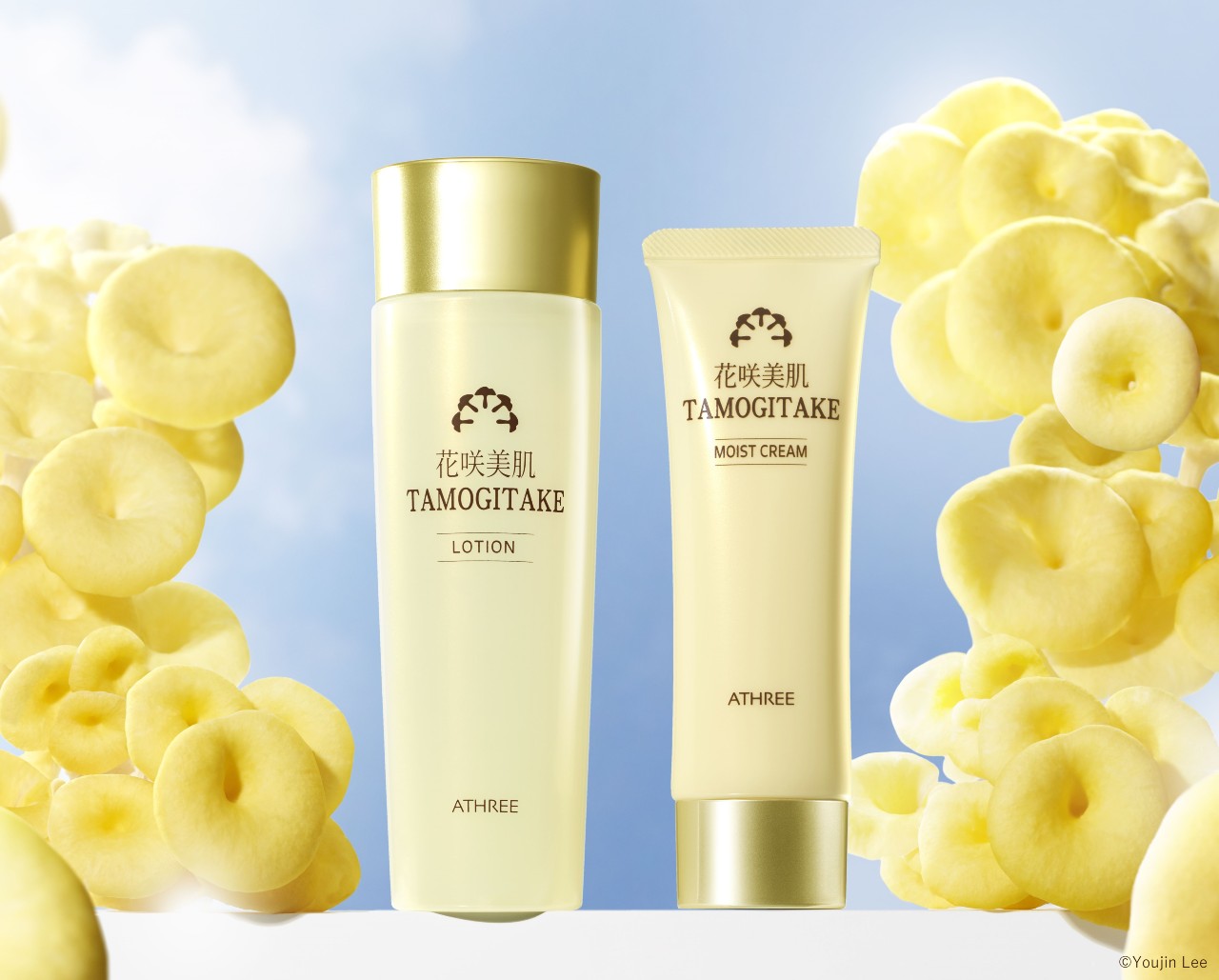 熊本県球磨郡あさぎり町のアスリー社が自社栽培する花咲たもぎ茸(はなさき たもぎたけ)のエキスを用いて開発したスキンケアとサプリメント。もたぎ茸は、豊富な美肌成分と抗酸化成分をもつ驚異のキノコの種類。花咲もたぎ茸は、そのなかでも特に抗酸化に優れた成分が多いとされている。2種類の安定型ビタミンC誘導体、4種のセラミド、ヒアルロン酸ナトリウムなども配合。