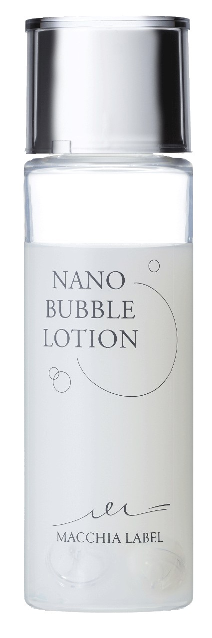 振るだけでナノバブルを発生させられる化粧水。秘密は、ナノバブル発生攪拌ボール。ボトルを上下に振り液体を攪拌ボールの複雑な構造を通過させ剪断と圧壊するベンチェリー方式によってナノサイズ(直径0.0001mm以下)の気泡を発生させる仕組み。この仕組を用いることで、バブルの状態維持も安定。発生したナノバブルは肌の奥にぐんぐん浸透していくため、化粧水の浸透をサポートします。