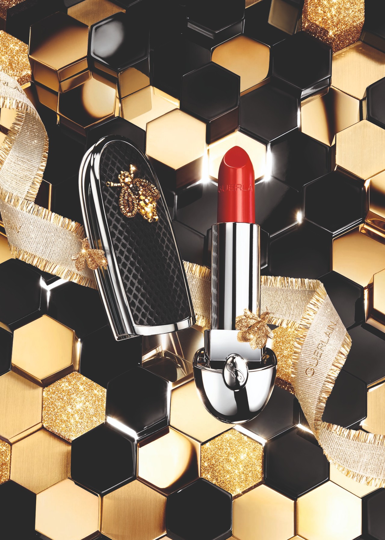 ゲランの代名詞『メテオリット ビーユ』のコレクターズアイテム、カスタマイズリップ『ルージュ ジェ』の限定ケースとカラー、さらにブロンジングパウダー『テラコッタ』や、アイシャドウ、アイブロウマスカラからもホリデーらしい限定色が揃う、華やかなラインナップ!