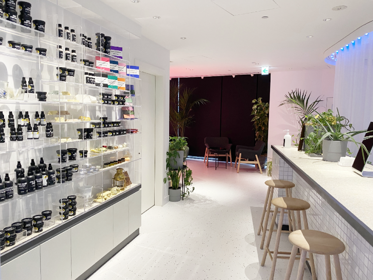 LUSH スパの素晴らしいところは、カラフルな商品が並ぶ楽しい店内とは印象を変えており、スパ内はシンプルでエレガントな空間に統一されていました。