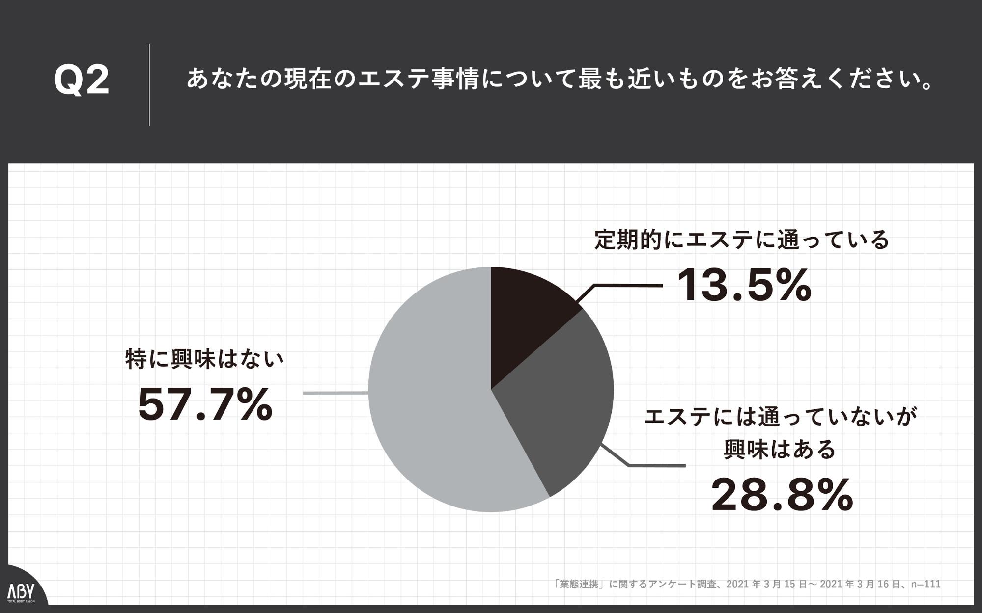 Q2.あなたの現在のエステ事情に最も近いものをお答えください。」(n=111)