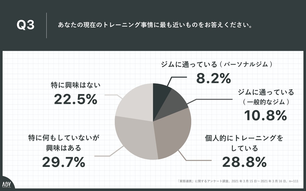 Q3.あなたの現在のトレーニング事情に最も近いものをお答えください。」(n=111)