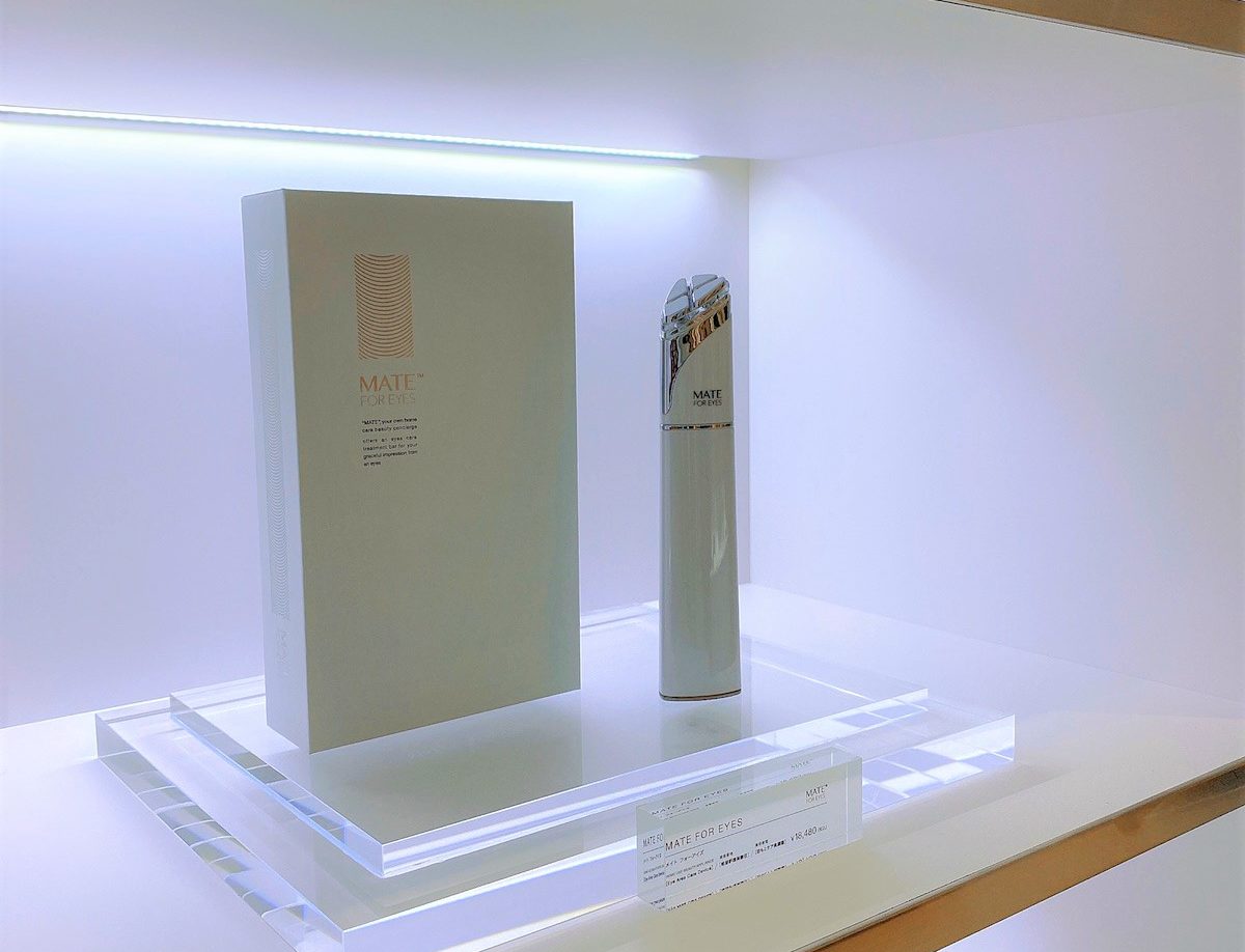 フロントに並ぶのは、ここは展示会場だったかしら?と、またまた錯覚してしまうような本格的目もとケア製品の数々。目もと用の美容ガジェット『メイト フォーアイズ』と目もとシート『エッセンスシート プレミアム』は、専用化粧箱に入った「GINZA SIX限定 目もと集中ケアBOX」として限定販売中でした。