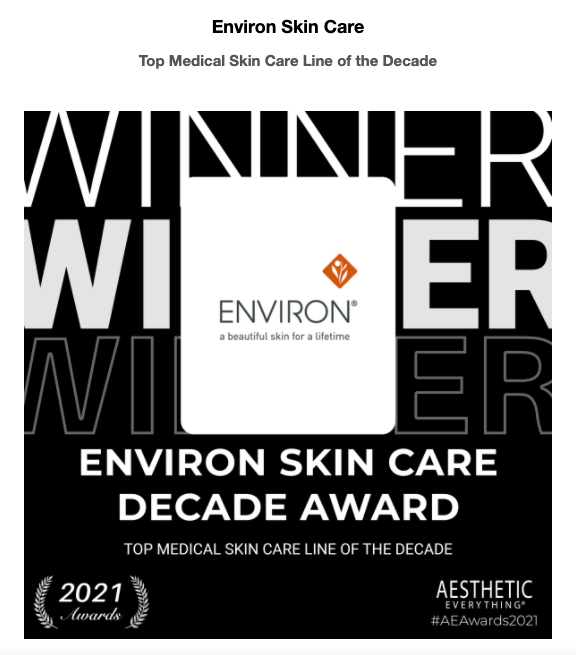 エンビロンがアメリカのエステティックエブリシング(美容医療賞)のトップメディカルスキンケアラインディケード賞を受賞