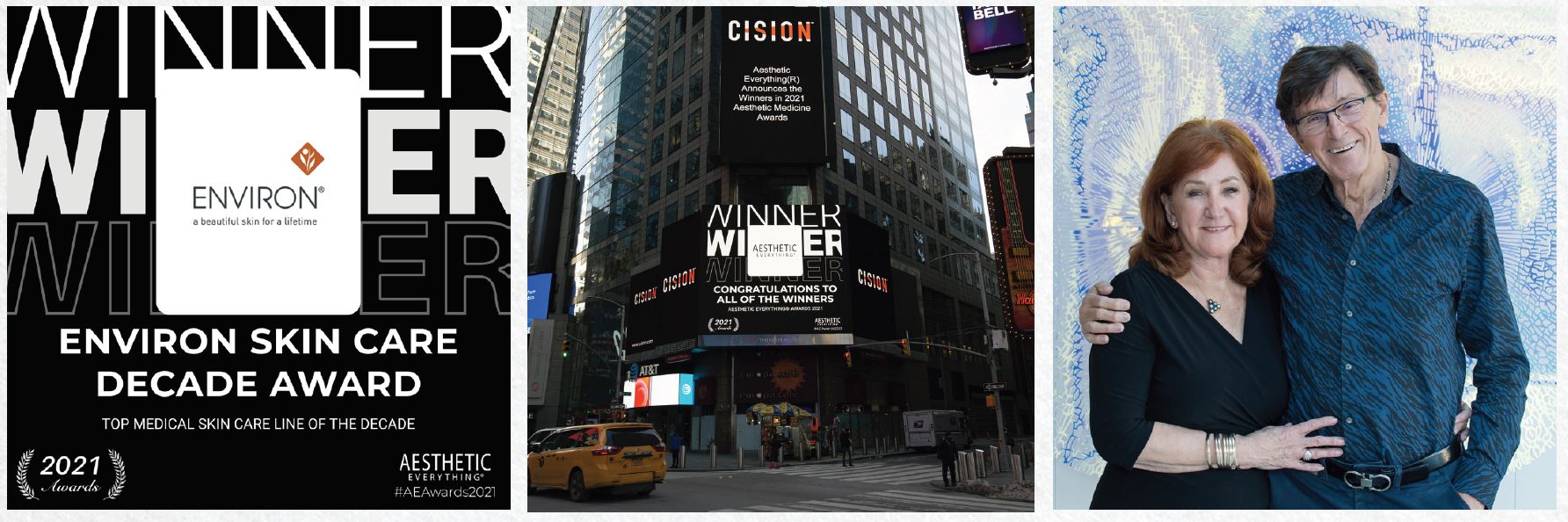エンビロンは、2018年、2019年、2020年と3年連続でAesthetic and Cosmetic MedicineAwards(美容医療賞)でトップメディカルスキンケアラインを受賞。そして2021年、ついにトップ賞であるトップメディカルスキンケアラインディケード賞を受賞した。