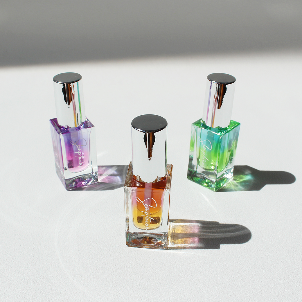 グリッターがたっぷり入ったネイルポリッシュは、フランボヤン。ブランド名はフランス語で「豪華」「華やか」の意味。まさに可愛く華やかなプロダクツそのもの!