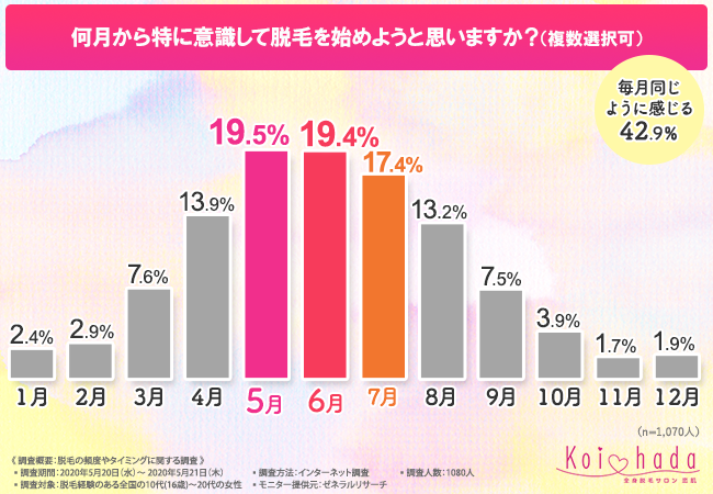 脱毛サロン『恋肌』が、 全国10代~20代の女性を対象に「脱毛の頻度やタイミング」に関するインターネット調査を実施。最新の脱毛トレンドが明らかになった。