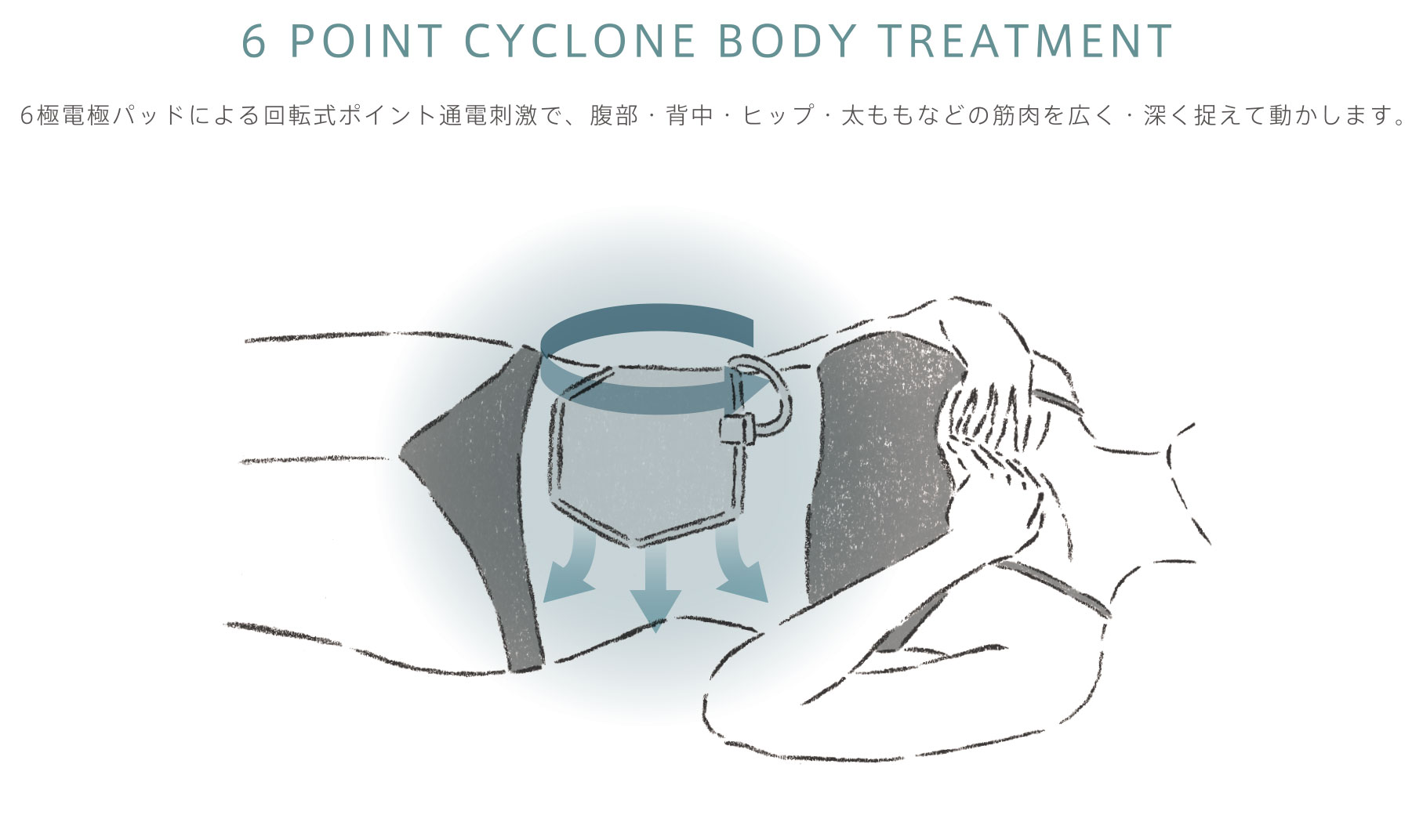ボディにはEMSを活用。周波数・波形・出力は独自の技術でコントロールされており、ゆるやかに働きかけ、ゆるやかに解いていくような繊細で複雑なトリートメントを実現させた。