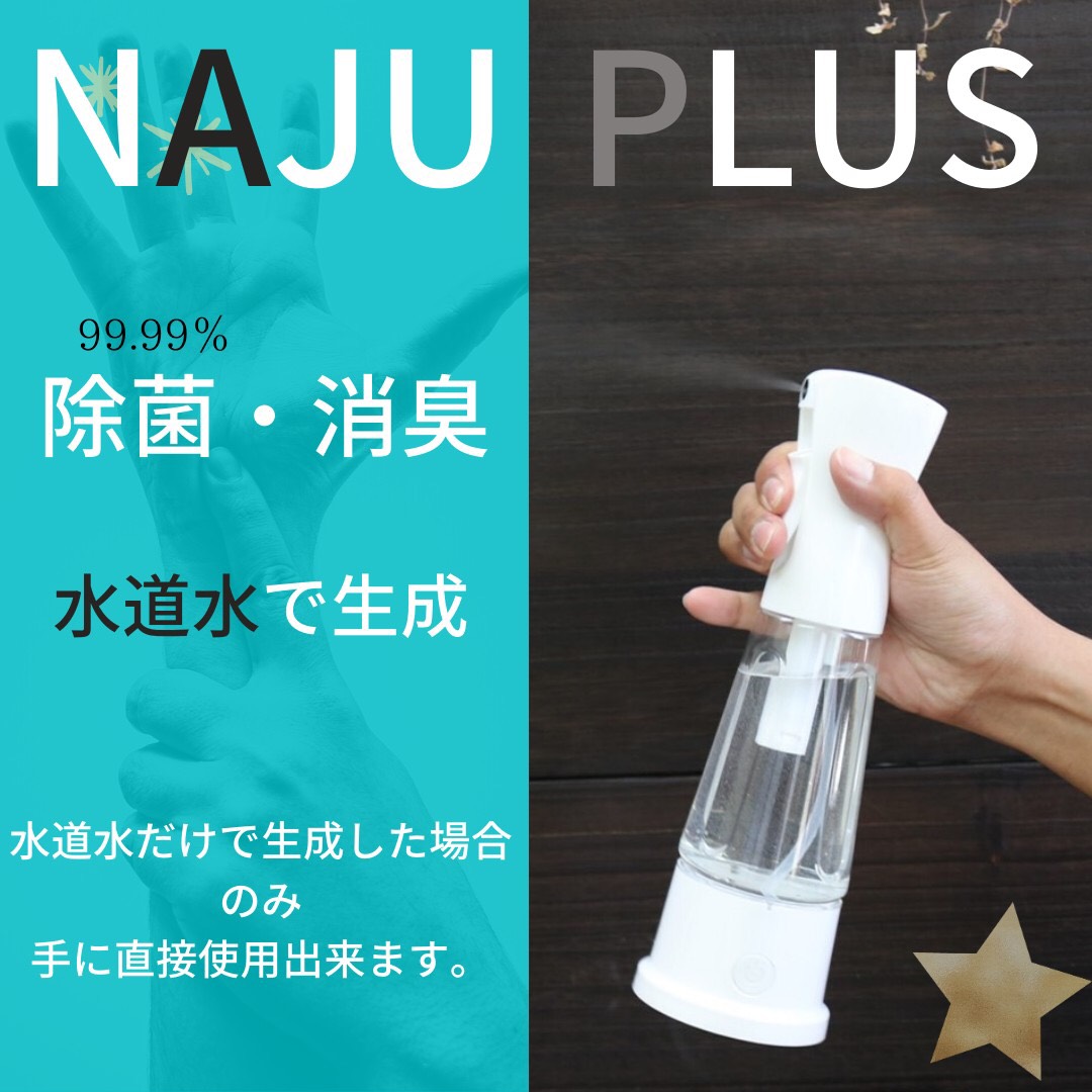 株式会社PigNoNは、水道水(または水道水と食塩)で次亜塩素酸水を生成する『ナジュプラス』を販売している。ナジュプラスは、クラウドファンディング開始15日で目標金額の200%を達成。NITEや省庁などで「効かないか効くのかわからない」といった発表がされる中、わずか数ヶ月で商品化・販売までこぎつけた。ナジュプラスは手などにも使える40ppm濃度や200ppmの高濃度も簡単に作ることができる。200ppmの濃度に達したら生成を自動的にストップするセンサーも内蔵。ランニングコスト0円、わずか3分で除菌・消臭力のある次亜塩素酸水を手にすることができる。