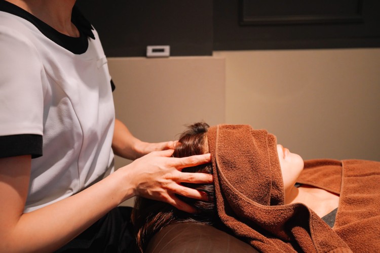 理学療法士の知識に基づくドライヘッドスパ技術を用いたメソッドで、髪や頭蓋骨へ負担をかけずに頭皮を動かして頭の筋肉をストレッチ。リクライニングチェアに仰向けに寝たまま、タオルの上から施術する。ツボ押しや指圧とは違ったリラクゼーションとして、地元でも人気だ。慢性的な脳疲労や眼精疲労の緩和、ストレスを開放して良質な睡眠を目指す。