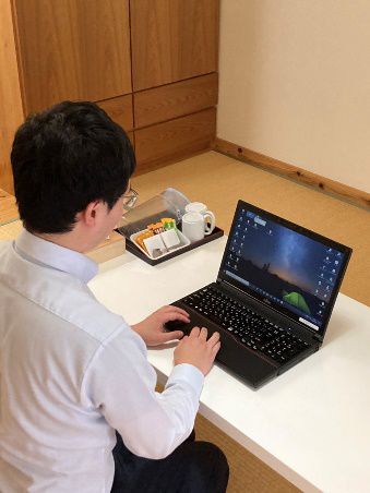 保養地として有名な伊豆高原の立地を活かすため、自然を感じることができる大きな窓を設置。客室は全室が完全個室となっており、WI-FIも利用できる。自室と同じように便利に使用できるよう、ミニデスクやA4カラープリンターなどをレンタルで用意している。シティホテルのようなビジネスセンターを利用せずに自室で完結するスタイルは、感染症対策にも有効だ。