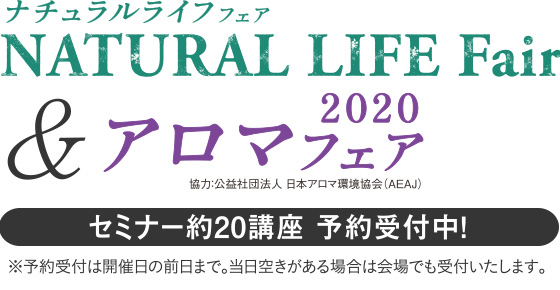 公益社団法人 日本アロマ環境協会(AEAJ)が協力する「アロマフェア2020」では、エッセンシャルオイルを中心としたアロマ用品やグッズ、会場限定セットなどが並ぶ。「ナチュラルライフフェア」では、自然素材にこだわった化粧品、雑貨、食品など、生活のさまざまなシーンを支えるサステナブルなアイテムが揃う。