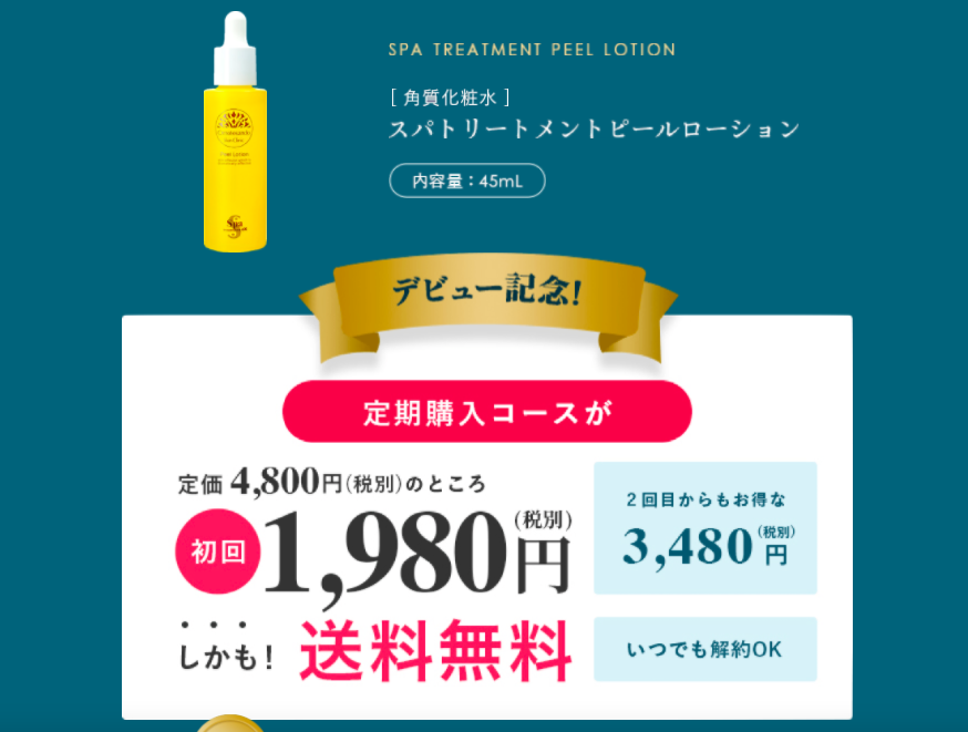 スパトリートメントが、サブスクリプション形式での商品販売を開始。第一弾は角質ホームケア用化粧水ピールローション