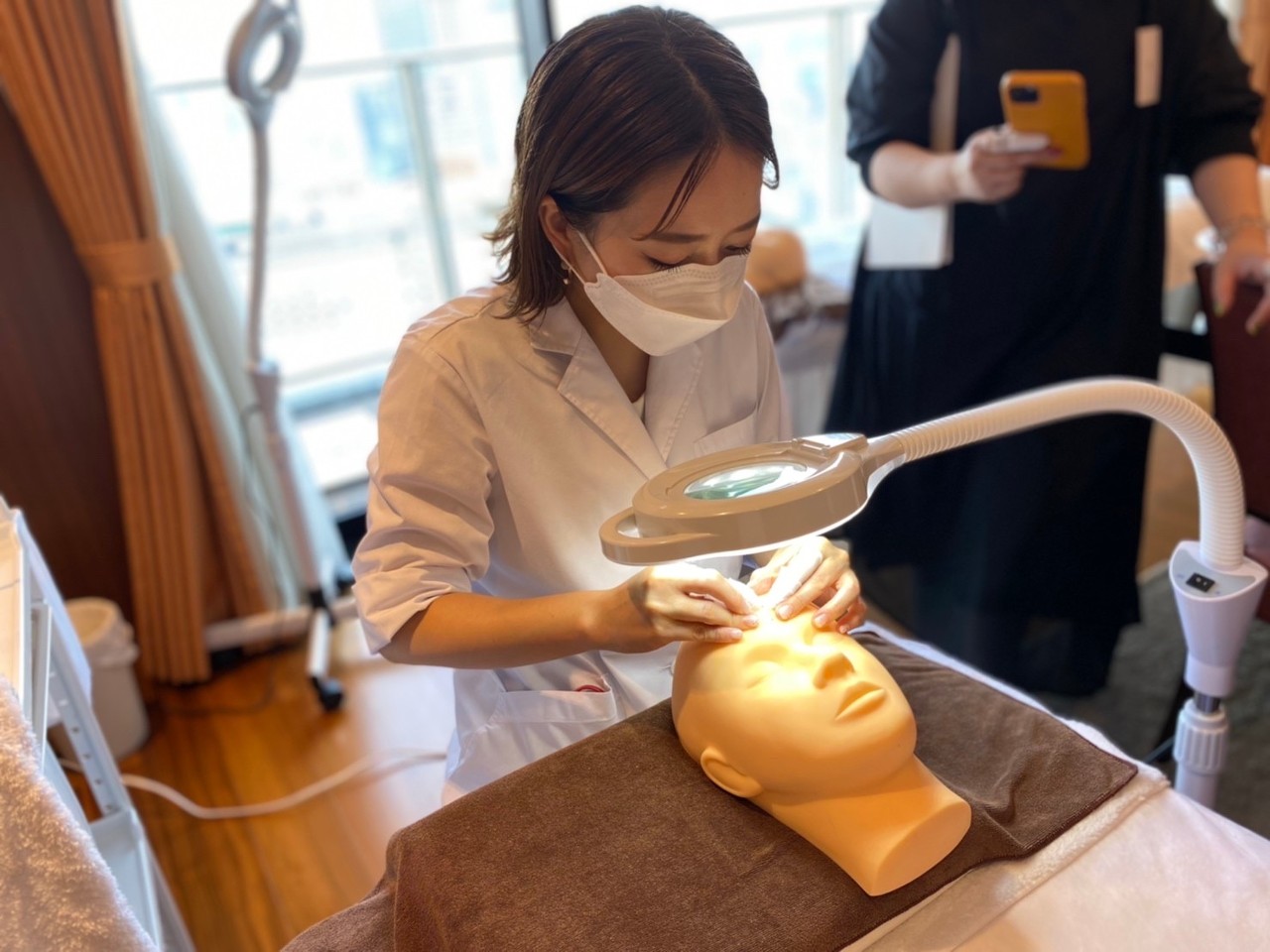 カリキュラム:毛穴理論、ピーリング、エクストラクション、毛穴引き締め・改善施術、メニュー戦略、スキンケアアドバイス他