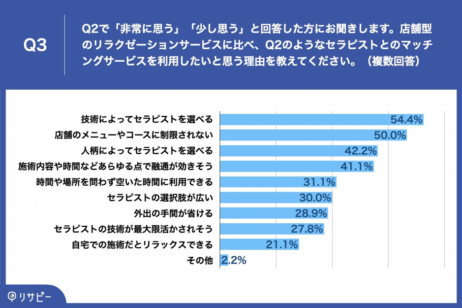 まさに、「ボディメンテナンスのスペシャリスト」といった印象を持っているようです。逆に、新人や下手な人はいないのではという期待も透けて見えます。ここが店舗型に求めることとの違いかもしれません。